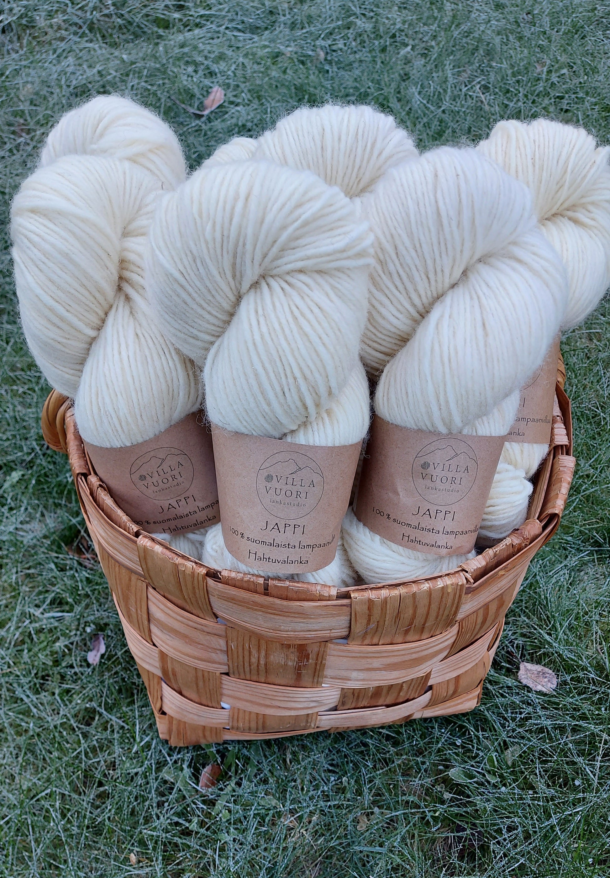 100 % suomalaista lampaanvillaa, vyyhti 100 g = n. 175 m.