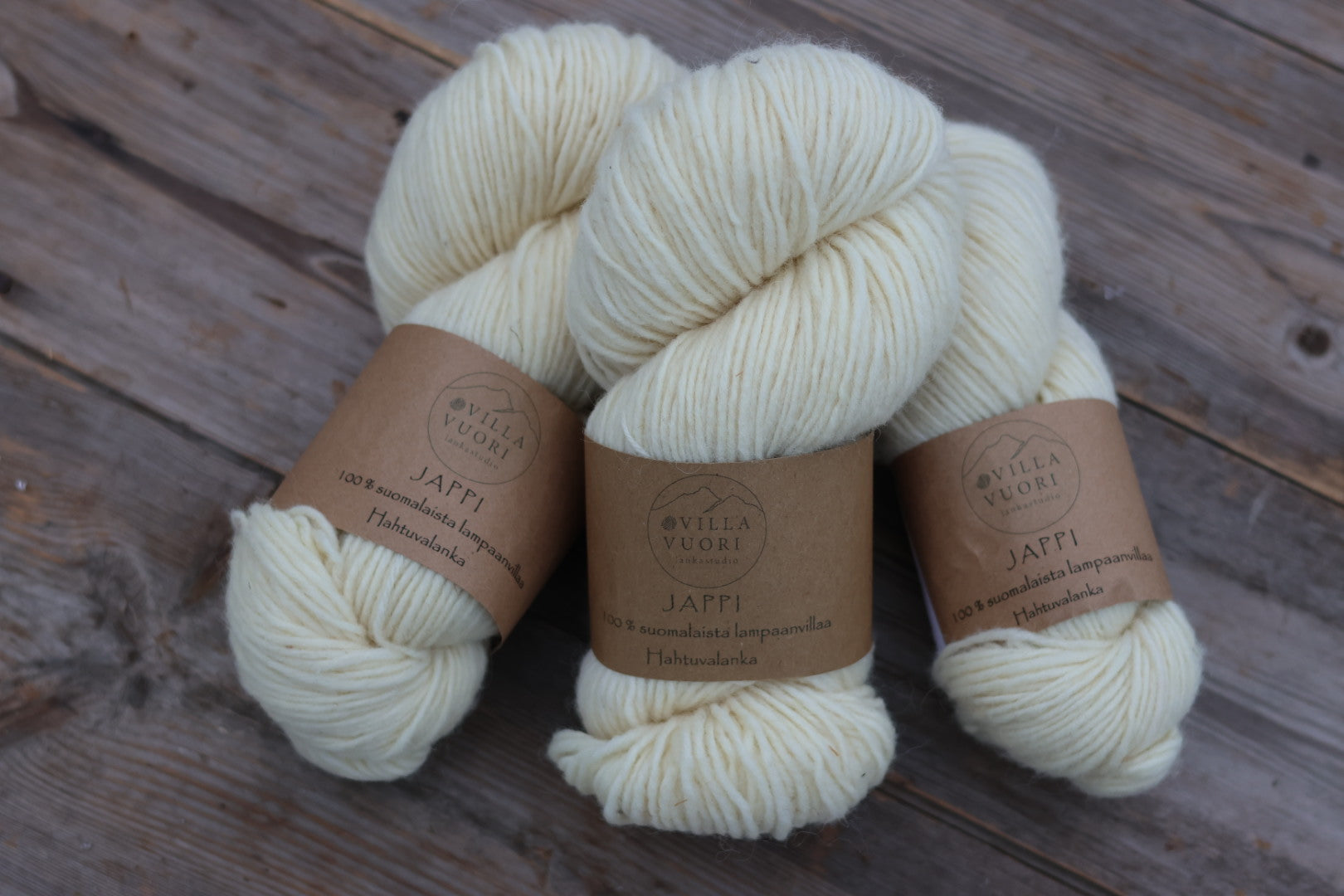 Soveltuu niin huovuttamattomiin kuin huovutettaviinkin tuotteisiin. Jappi -hahtuvalankaa on saatava luonnonvalkeana ja vaalean harmaana lampaanvillan omissa sävyissä.